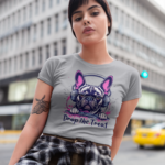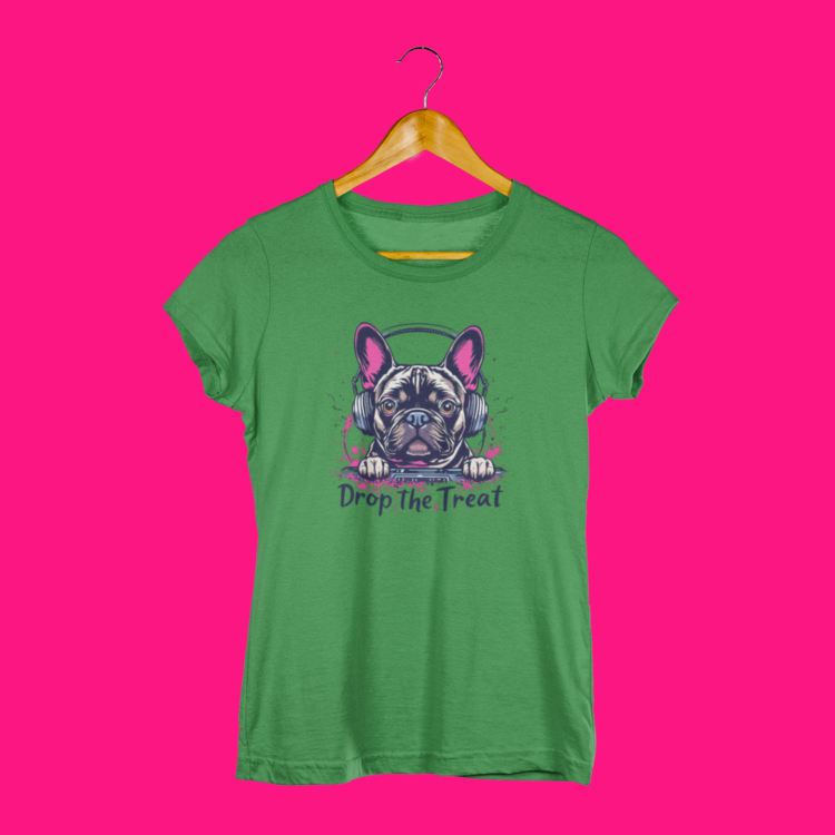 Funny French Bulldog DJ design featuring a cute Frenchie wearing headphones with the phrase “Drop the Treat.” Perfect for French bulldog lovers, dog owners, DJs, music producers, electronic music fans, and pet parents who love humor and music.